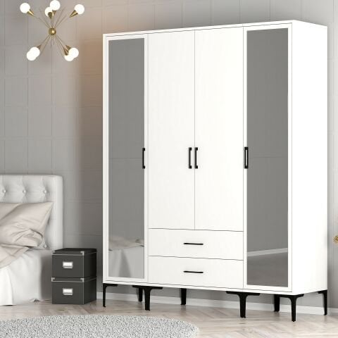 Kumsal 4 Kapılı (RTR) Gardırop - Beyaz / Beyaz