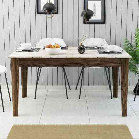 Milan Yemek Masası - Ceviz / Beyaz Mermer