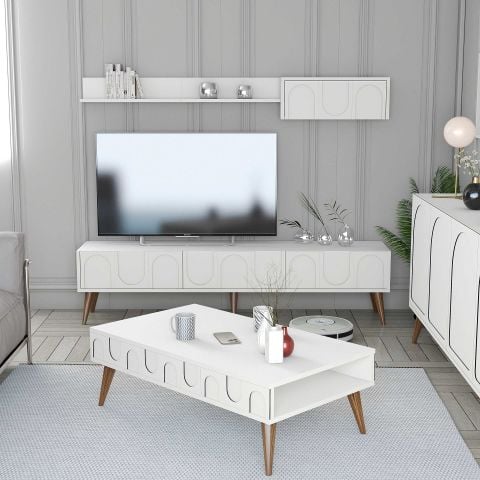 Variant Lyon Tv Ünitesi Ve Orta Sehpa Takımı - Beyaz / Ceviz