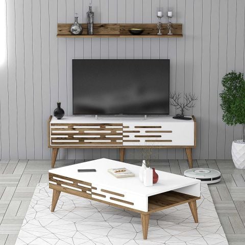 Variant Valensiya 140Cm Tv Ünitesi Ve Orta Sehpa Takımı - Ceviz / Beyaz