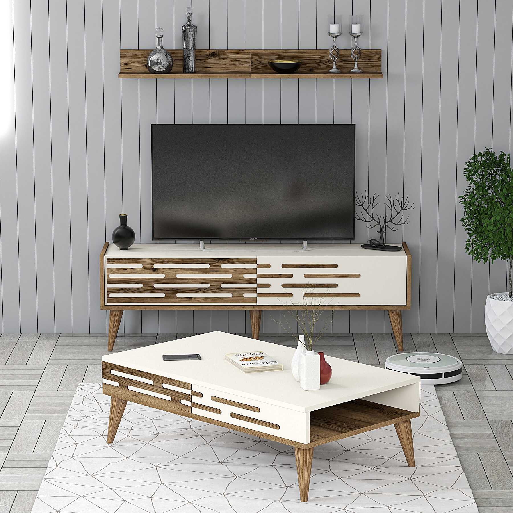 Variant Valensiya 140Cm Tv Ünitesi Ve Orta Sehpa Takımı - Ceviz / Krem